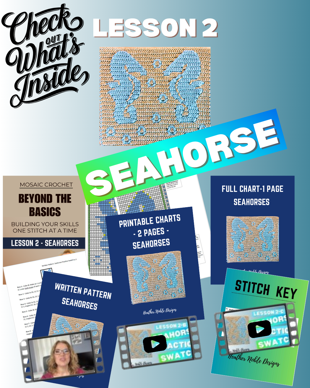 I founded Heather Noble Designs in 2021 to combine my two lifelong passions: teaching and mosaic crochet.