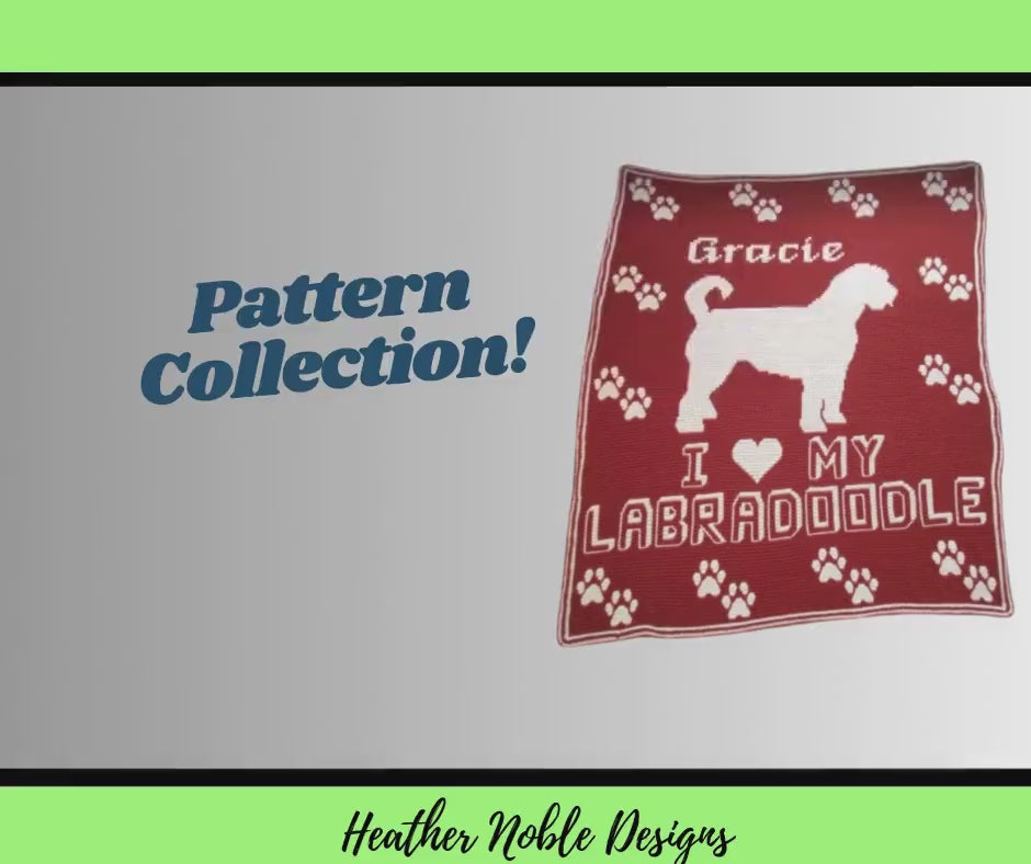 This retro mosaic crochet blanket pattern from 2022 features the silhouette of a Labradoodle. It’s the perfect gift for the dog lover in your life!